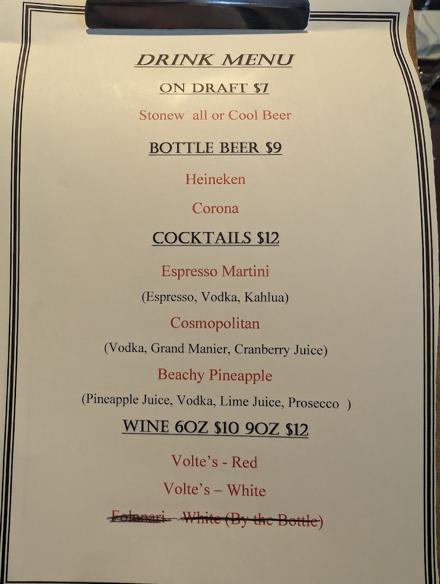 The Soup options include the comforting Avgolemono, perfect for warming up on a cool day. When it comes to drinks, the selection is just as impressive. On tap, they offer Stonew All or Cool Beer, while bottled beer options include well-known choices like Heineken and Corona. If you're in the mood for a cocktail, the menu features signature drinks such as the rich Espresso Martini, the refreshing Cosmopolitan, and the tropical Beachy Pineapple.