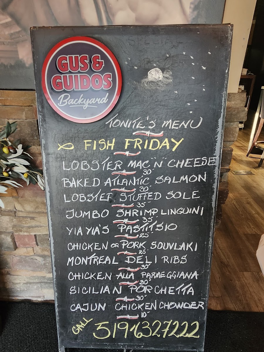 Overall, Gus & Guido's Backyard provides an extensive and varied menu that promises a memorable dining experience, whether you're in the mood for something light and flavorful or a rich, comforting meal. The combination of appetizers, main courses, drinks, and desserts ensures that there’s something for everyone to enjoy.